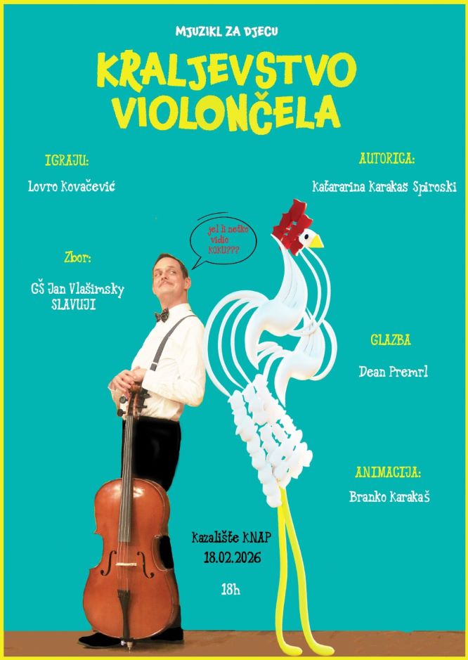 Sinoć je u zagrebačkom kazalištu “Knap” održan edukativni i interaktivni dječji mjuzikl „Kraljevstvo violončela“, koji je oduševio i razveselio male gledatelje, učenike GŠ Zlatka Balokovića iz Zagreba.