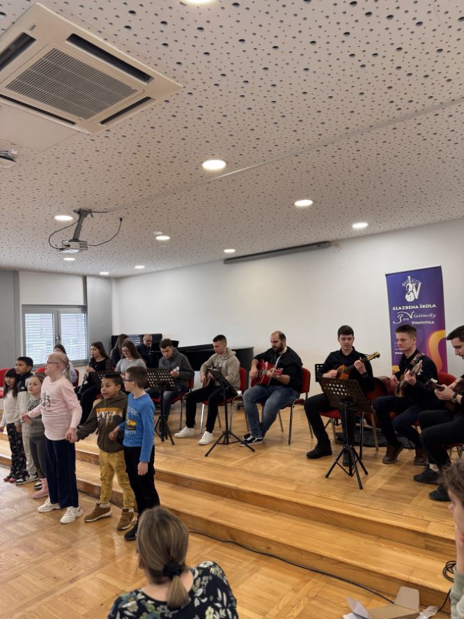 Današnje prijepodne bilo je rezervirano za tradicionalni koncert u sklopu projekta “Zvonka radost”. Našu školu posjetili su učenici Centra za odgoj i obrazovanje iz Virovitice te zajedno nastupili sa učenicima glazbene škole Jan Vlašimsky.