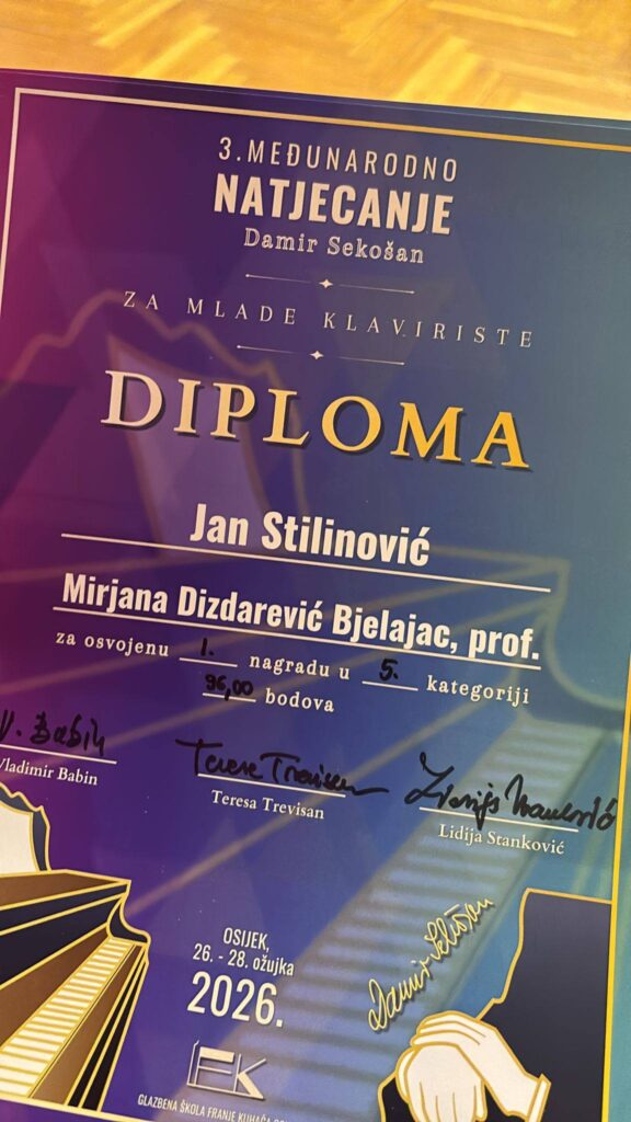 Drugi dan natjecanja Damir Sekošan u Osijeku donosi odlične rezultate naših učenika. Tako je Jan Stilinović osvojio prvu nagradu sa 96 bodova, njegova mentorica je Mirjana Dizdarević Bjelajac, dok je drugi kandidat Ivan Horvat dobio 93 boda i 2.nagradu a njegov mentor je Perica Mihaljević. Bravo, čestitke!