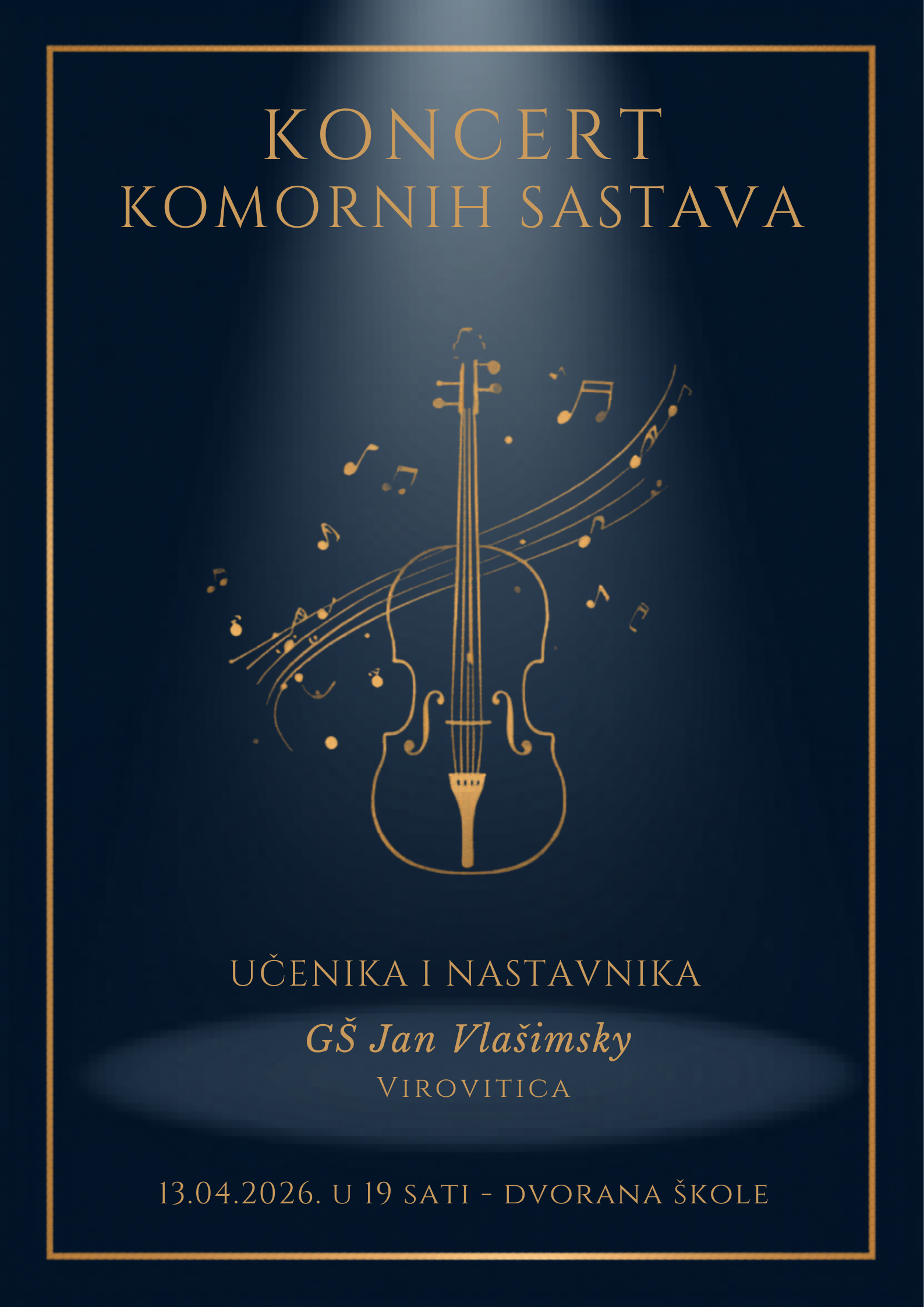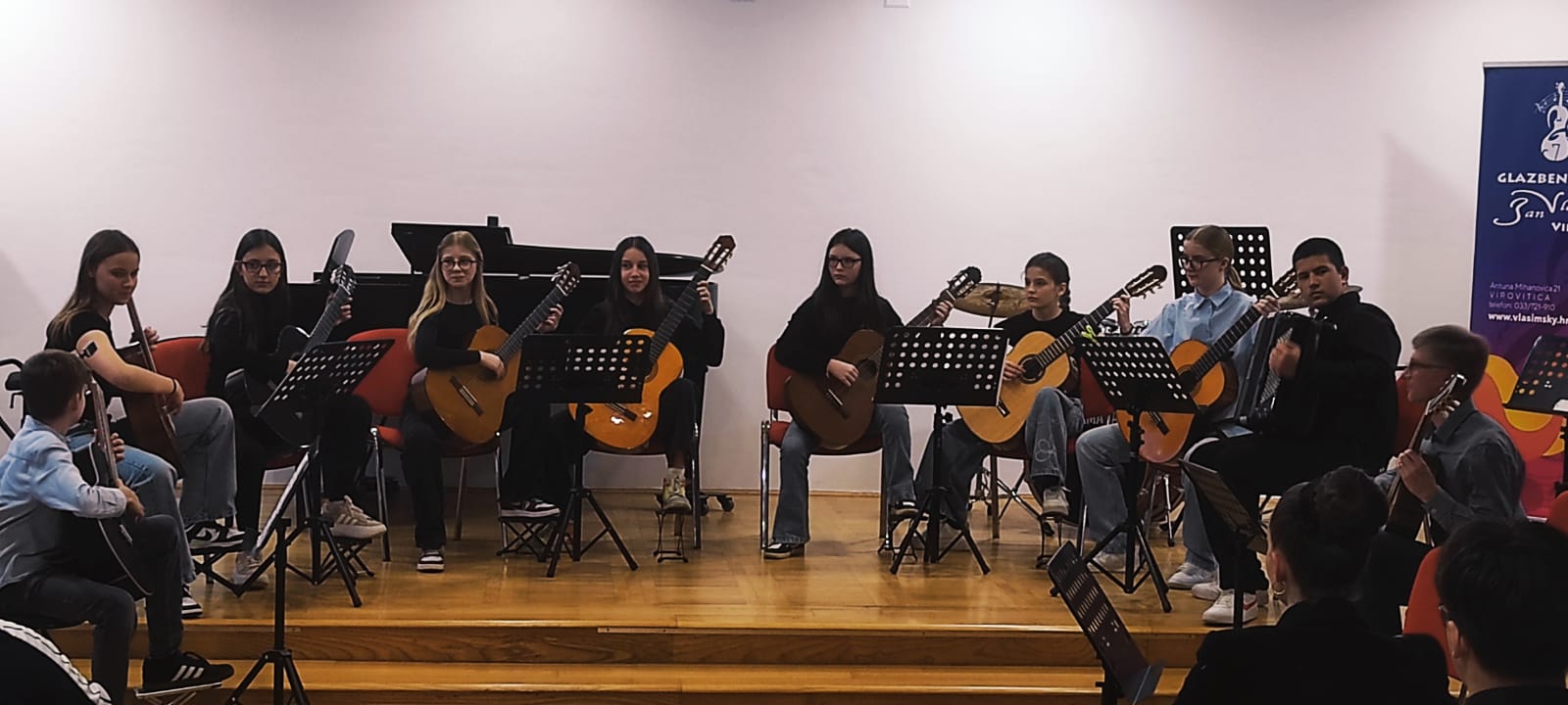 U ponedjeljak, 13. travnja 2026. godine održan je koncert komornih sastava učenika i nastavnika GŠ Jan Vlašimsky. Koncert je protekao u izuzetno ugodnoj, veseloj i inspirativnoj atmosferi. Publika je uživala u raznolikom programu, a zajedničko muziciranje učenika i njihovih mentora donijelo je posebnu toplinu i energiju. Bila je to večer ispunjena lijepim trenucima, zajedništvom i ljubavlju prema glazbi.