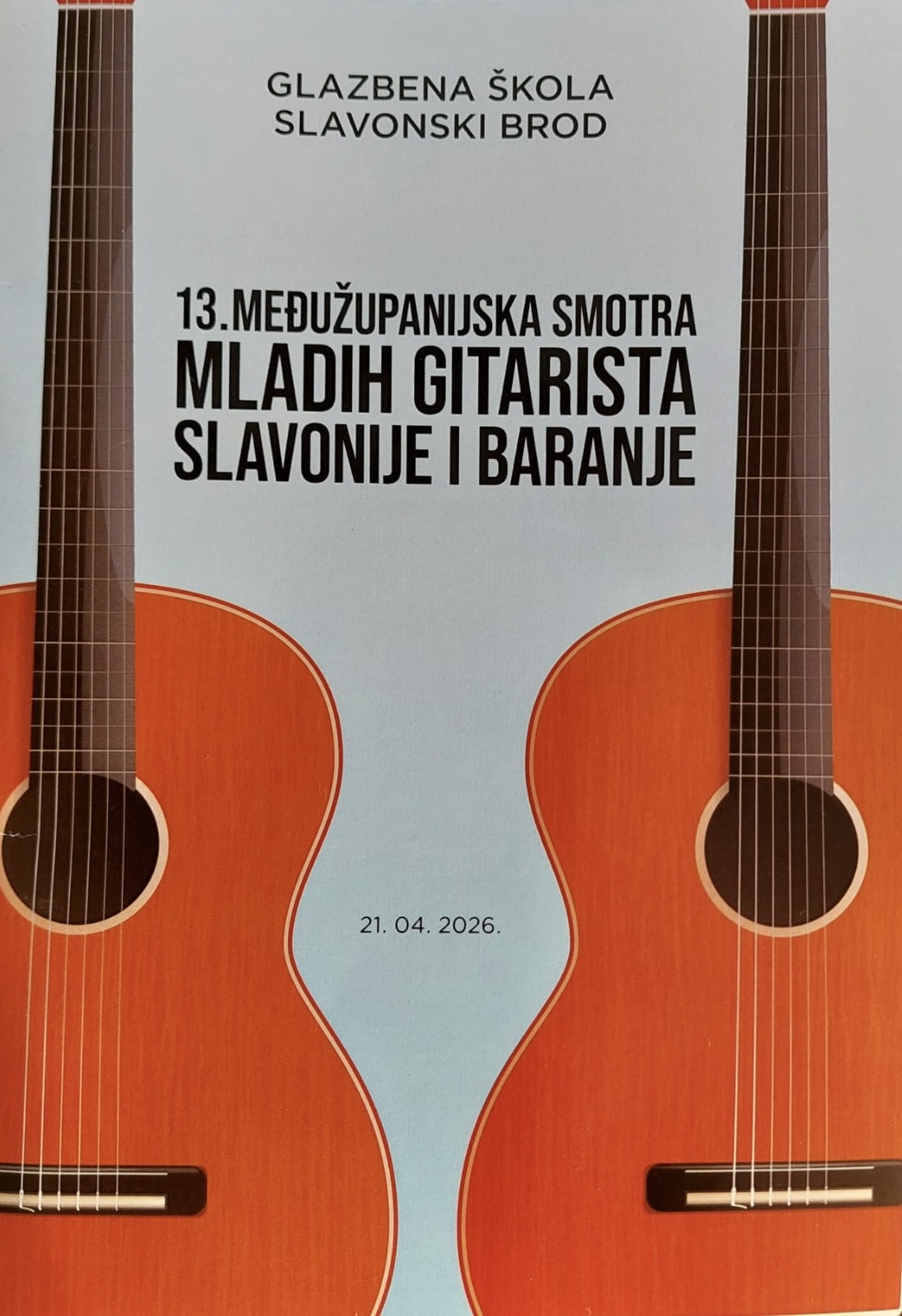 U utorak, 21.4.2026. mnogobrojna i vesela ekipa mladih gitarista naše škole (14 učenika) sudjelovala je na XIII. međužupanijskoj smotri mladih gitarista Slavonije i Baranje u Slavonskom Brodu.